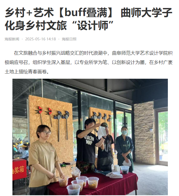 在文旅融合与乡村振兴战略交汇的时代浪潮中,曲阜师范大学艺术设计学院积极响应号召,组织学生深入基层,以专业所学为笔、以创新设计为墨,在乡村广袤土地上描绘青春画卷。