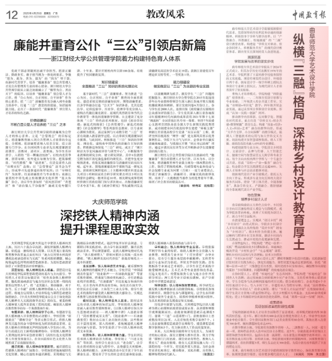 曲阜师范大学艺术设计学院敏锐洞察时代需求,凭借深厚的历史积淀和卓越的创新精神,积极投身于学科与教学改革,以“产教融合、科教融汇、校地融通”的“三融”设计教育改革,构建起“学科交叉驱动、校企协同育人、科教服务共生”的现代设计教育体系,踏出坚实且深刻的育人奋进轨迹。