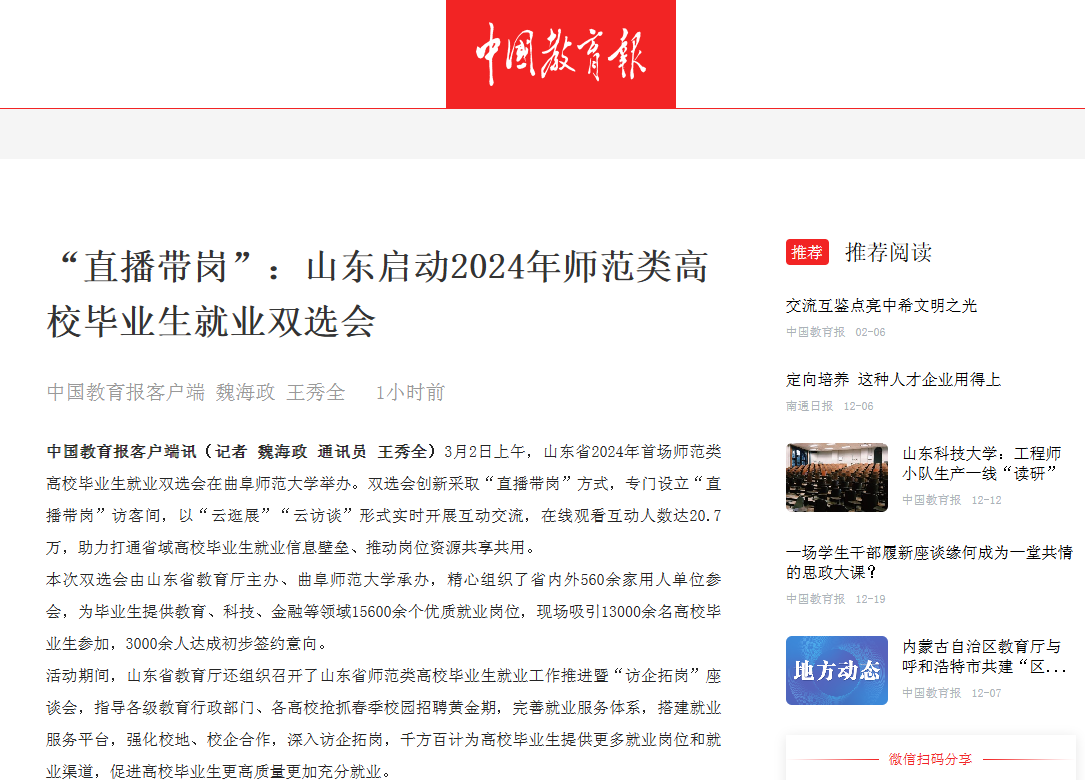 上一篇:【大众日报】曲阜师范大学:打造毕业生与用人单位双向奔赴的“高速通道”