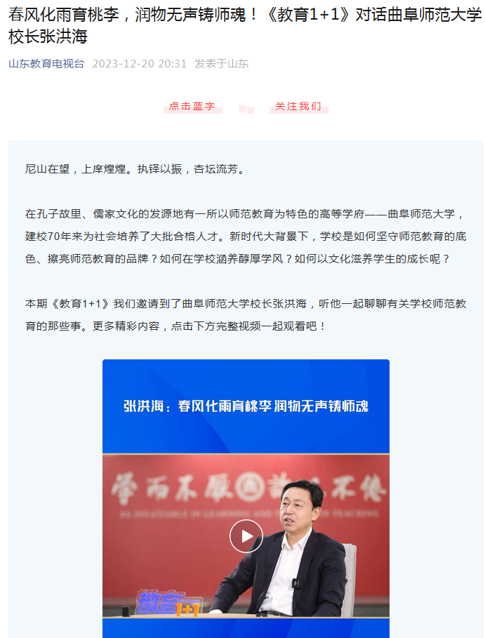 上一篇:【央视新闻】曲阜师大李兆祥教授解读“教育硕士”招考