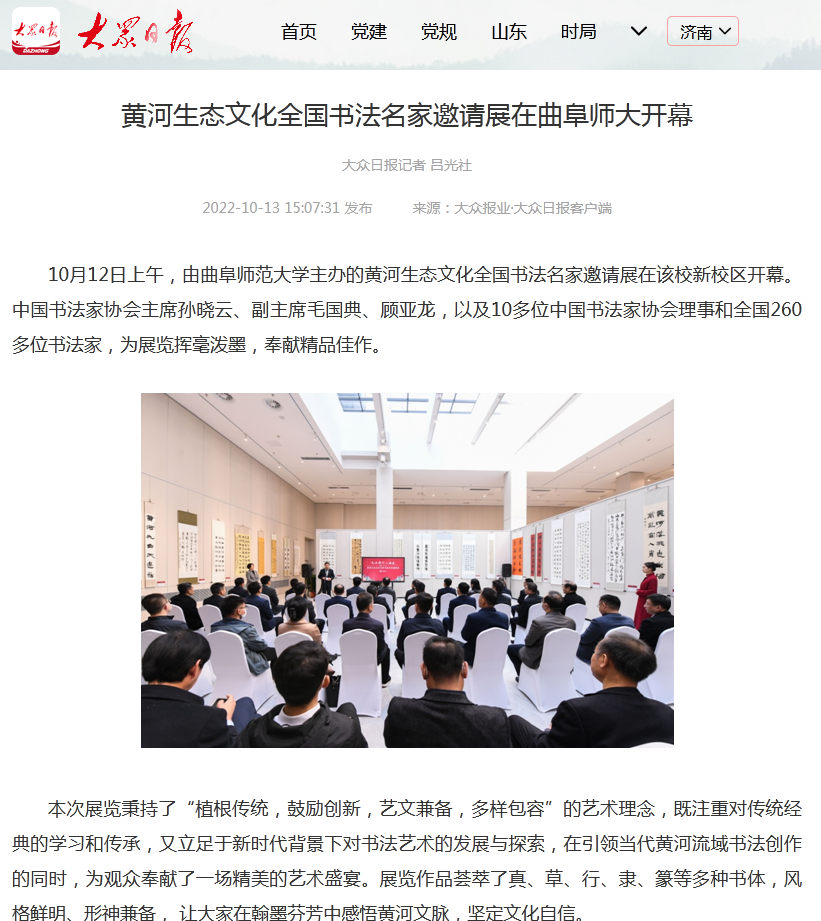 上一篇:【光明日报】黄河生态文化全国书法名家邀请展在曲阜师大举办