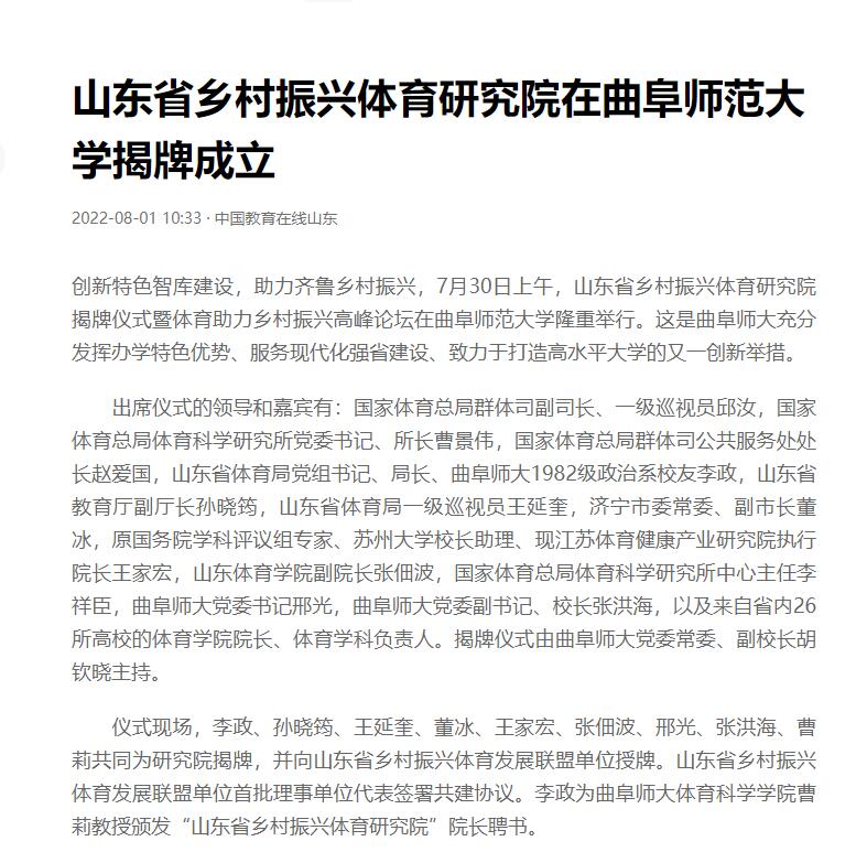 上一篇:【人民网】山东省乡村振兴体育研究院在曲阜师大揭牌成立