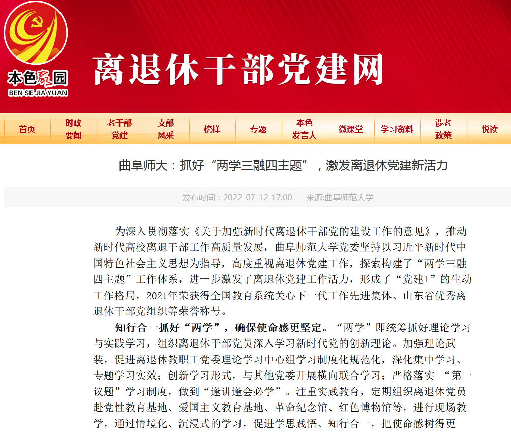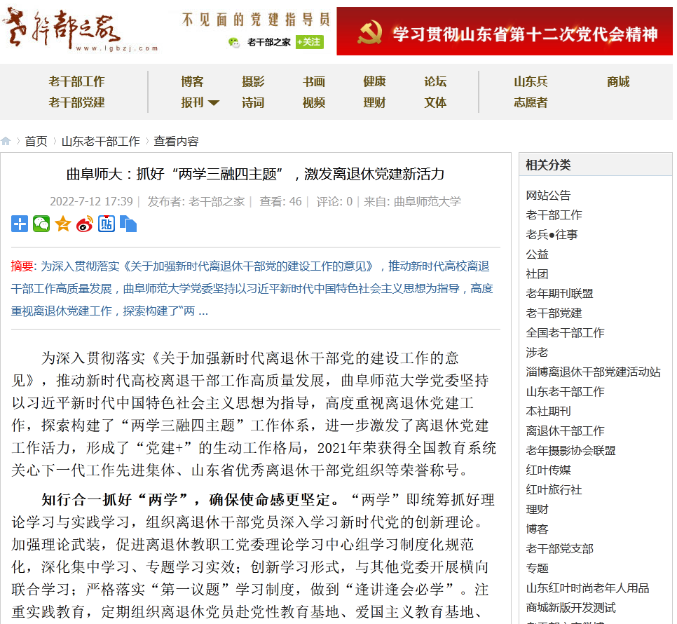 离退休干部党建网报道链接:http://dangjian.lgbzj.com/content?news_id=F77C4F161E134ECA912E9768FD2C9A6B