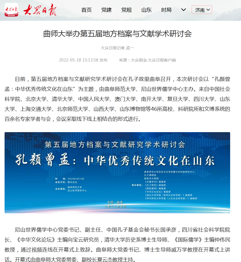 下一篇:【中国教育新闻网】曲阜师范大学举办第五届地方档案与文献研究学术研讨会