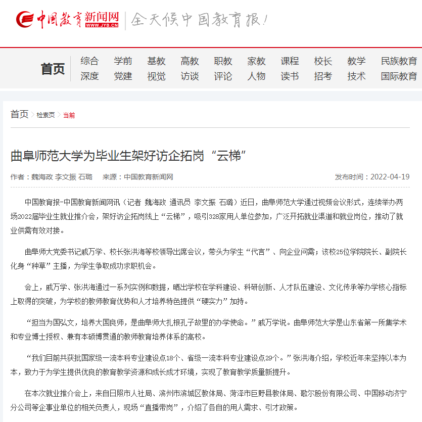 上一篇:【大众日报】架好访企拓岗线上“云梯” 曲师大书记校长带头直播促就业