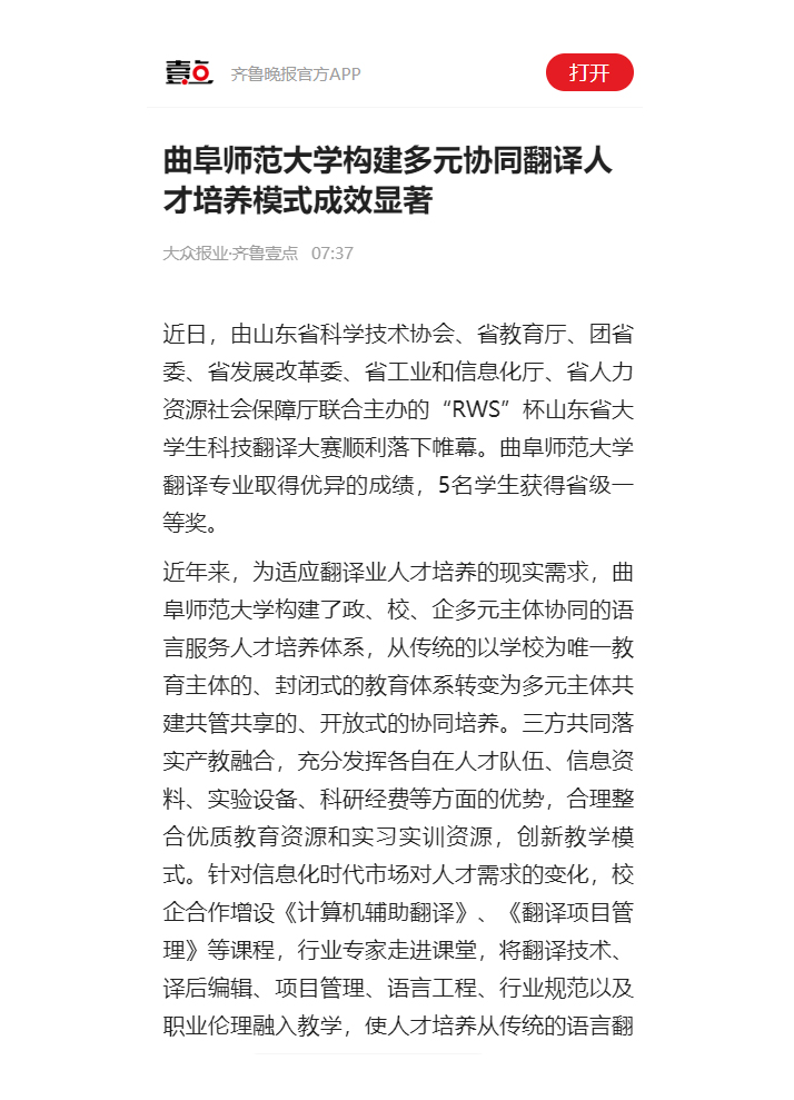 下一篇:【中国报道】曲阜师范大学:构建多元协同翻译人才培养模式