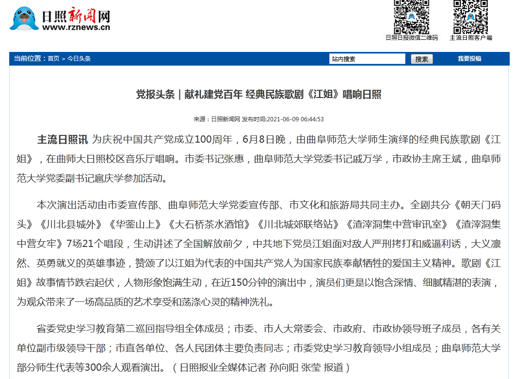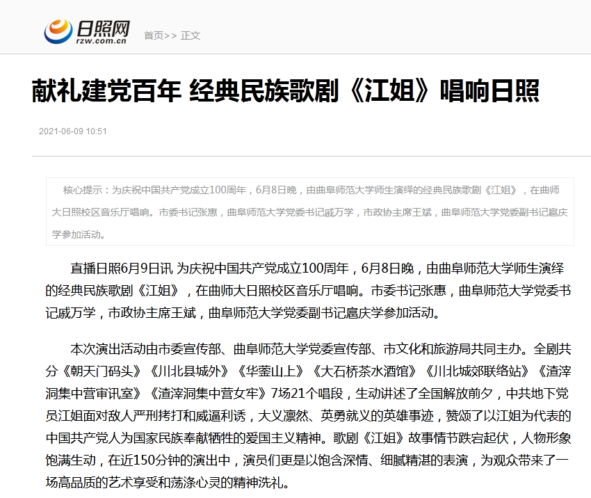 下一篇:齐鲁晚报:“艺”心向党,观曲阜师大校园版歌剧《江姐》感悟信仰之坚