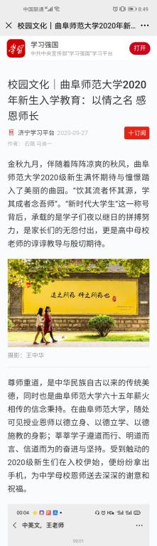 下一篇:学习强国:校园文化|曲阜师范大学2020年新生入学教育:以家之名 感恩曲园