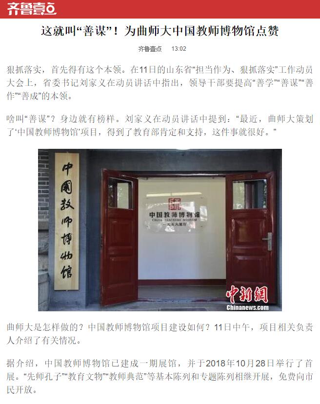 上一篇:齐鲁网:曲师大“中国教师博物馆”为何能在全省动员大会上被点赞?