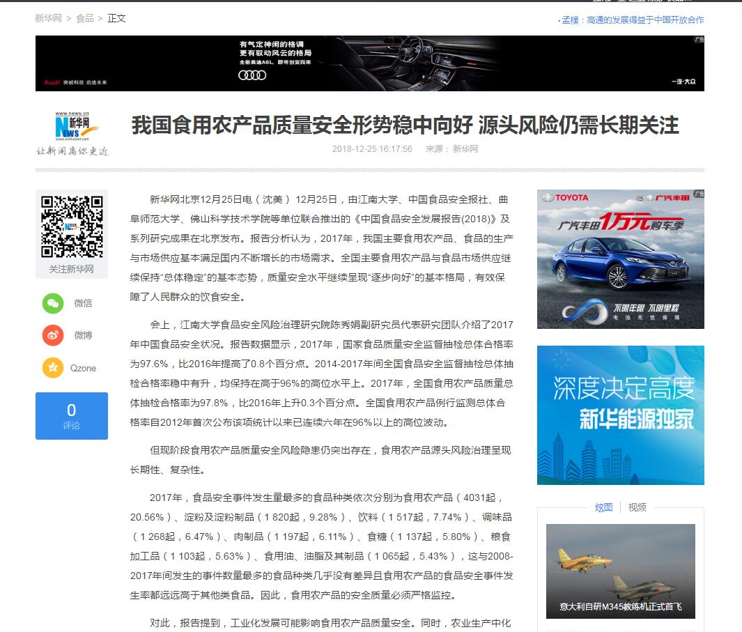 新华网报道链接:http://www.xinhuanet.com/food/2018-12/25/c_1123902755.htm