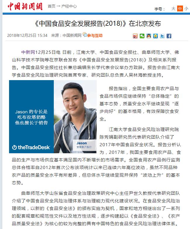 上一篇:新华网:《中国食品安全发展报告(2018)》在北京发布