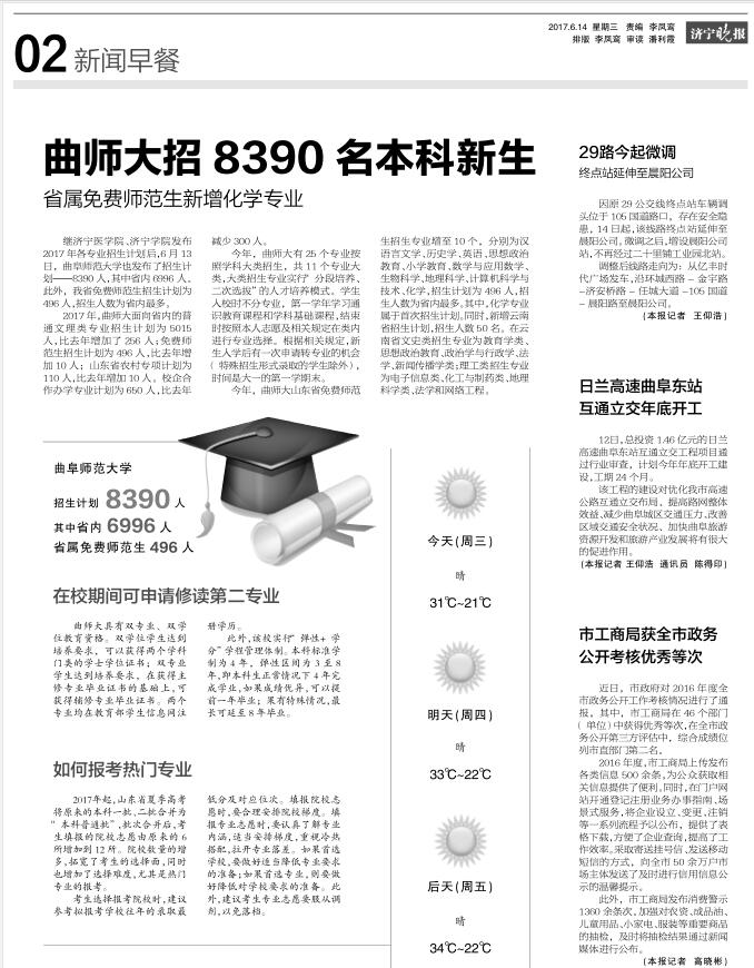 上一篇:齐鲁晚报:曲师大今年计划招8390名新生 免费师范生新增化学专业