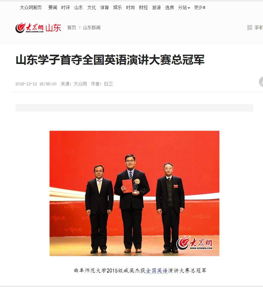 上一篇:中国新闻网:山东理科生斩获全国英语演讲大赛总冠军