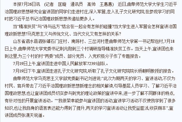 上一篇:青年网:井冈情·中国梦 曲阜师范学子让信仰点亮人生