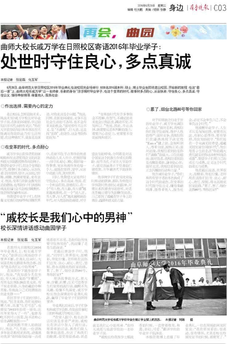 下一篇:齐鲁晚报:曲师大9298名毕业生走出校园 校长戚万学送上寄语