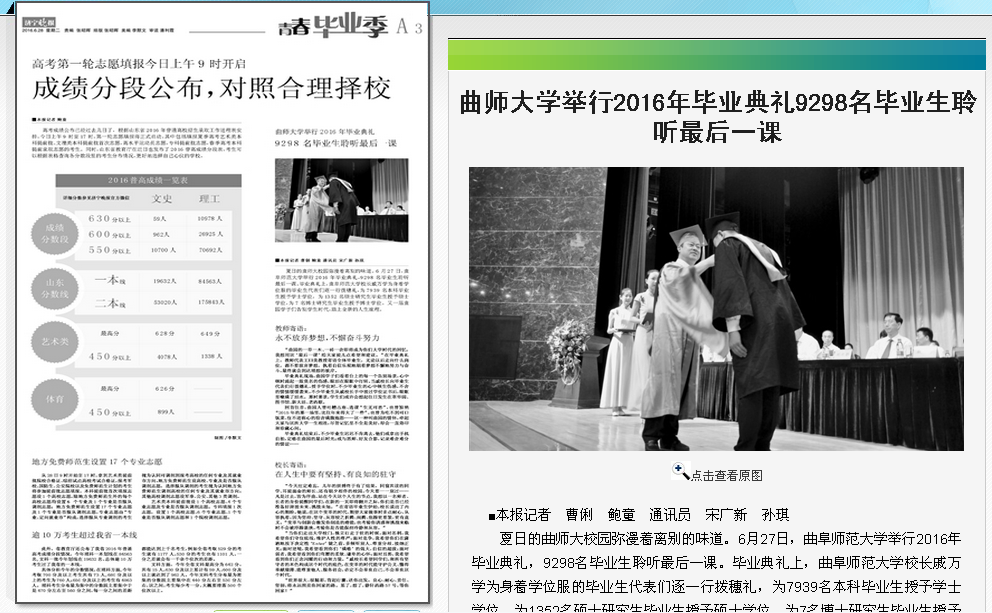 上一篇:齐鲁晚报:曲师大9298名毕业生走出校园 校长戚万学送上寄语