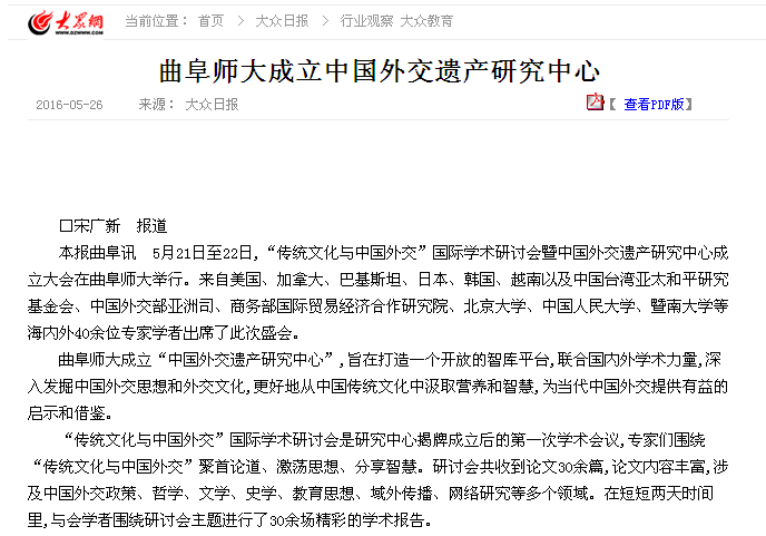 下一篇:济宁晚报:曲阜师范大学成立中国外交遗产研究中心打造传统文化研究的高端智库