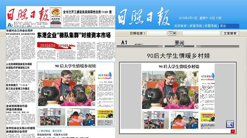 《日照日报》报道链接:90后大学生情暖乡村娃