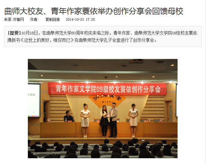上一篇:光明网:“泰山学术论坛——自动控制理论及应用专题”国际学术会议在曲阜师范大学开幕