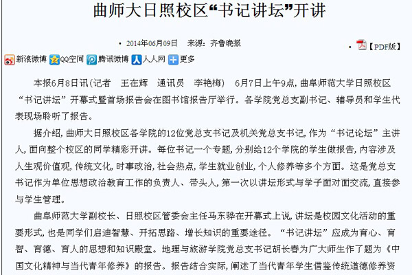 上一篇:人民网:文化传承生生不息 非物质文化遗产走进曲阜师范大学