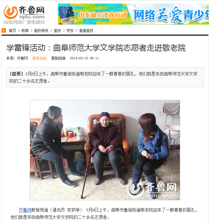 下一篇:大众网:曲师大牵手日照特殊学校 雷锋日爱心义卖筹善款